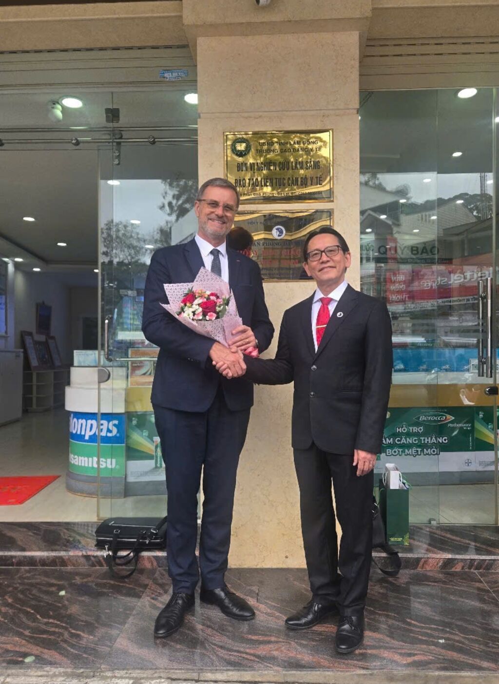 | L’ambassadeur de France au Vietnam, Olivier Brochet (gauche), et le Pr. Duong Quy Sy à Dà Lat. |