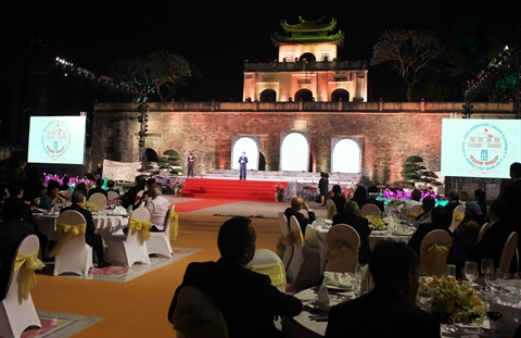 | La réception d'État des délégués de l'IPU-132, le soir du 31 mars dans la Citadelle impériale de Thang Long à Hanoi. |