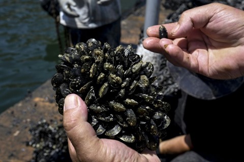 Remontés à l'aide de vieux treuils rouillés, les amas peuvent peser jusqu'à 20 kilos. "Quand tout marche bien... Car quand la canicule étouffe la moule, nous sommes à zéro. Tout est perdu", soupire la mytilicultrice Violet Mihasi, quinquagénaire aux cheveux courts noirs de jais et au teint buriné.