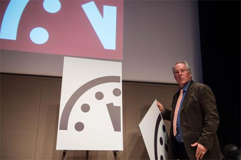 "Aujourd'hui, le réchauffement climatique incontrôlé et une course aux armes nucléaires résultant de la modernisation des énormes arsenaux existant représentent des menaces extraordinaires et indéniables à la survie de l'humanité", a estimé Kennette Benedict en annonçant cette décision lors d'une présentation à Washington. "Les dirigeants mondiaux n'ont pas agi avec la promptitude et l'ampleur requises pour protéger les citoyens de catastrophes potentielles", a-t-elle ajouté pour justifier le déplacement de l'aiguille de la pendule.