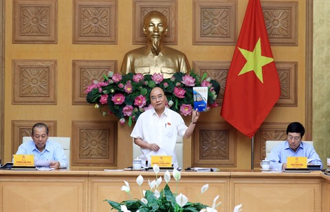 | Le Premier ministre Nguyên Xuân Phuc (centre) préside le 21 mai une réunion de la permanence du gouvernement consacrée aux mesures pour aider PVN et Vietnam Airlines à surmonter des difficultés. |