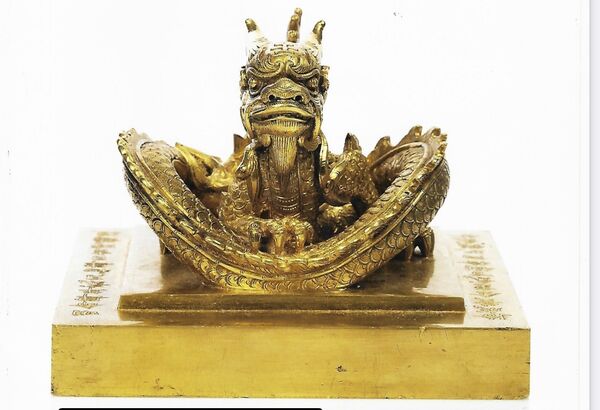 | Le sceau en or coulé en 1823 sous le règne du roi Minh Mang. |