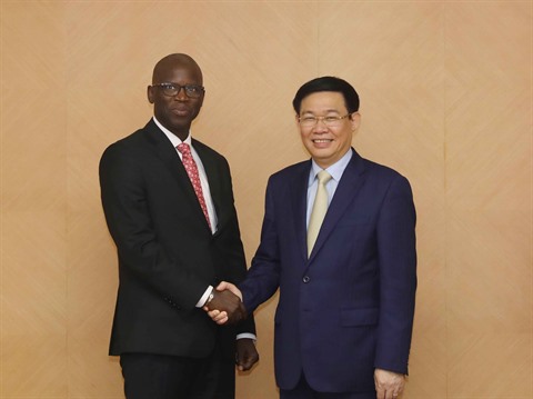 | Le vice-Premier ministre vietnamien Vuong Dinh Huê (droite) et le directeur national de la BM au Vietnam, Ousmane Dione |