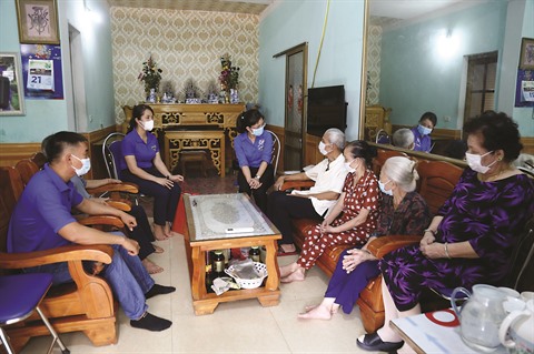 | Jeunes rendant visite à la famille d’un invalide de guerre (en chemise blanche) à Tuyên Quang (Nord) |
