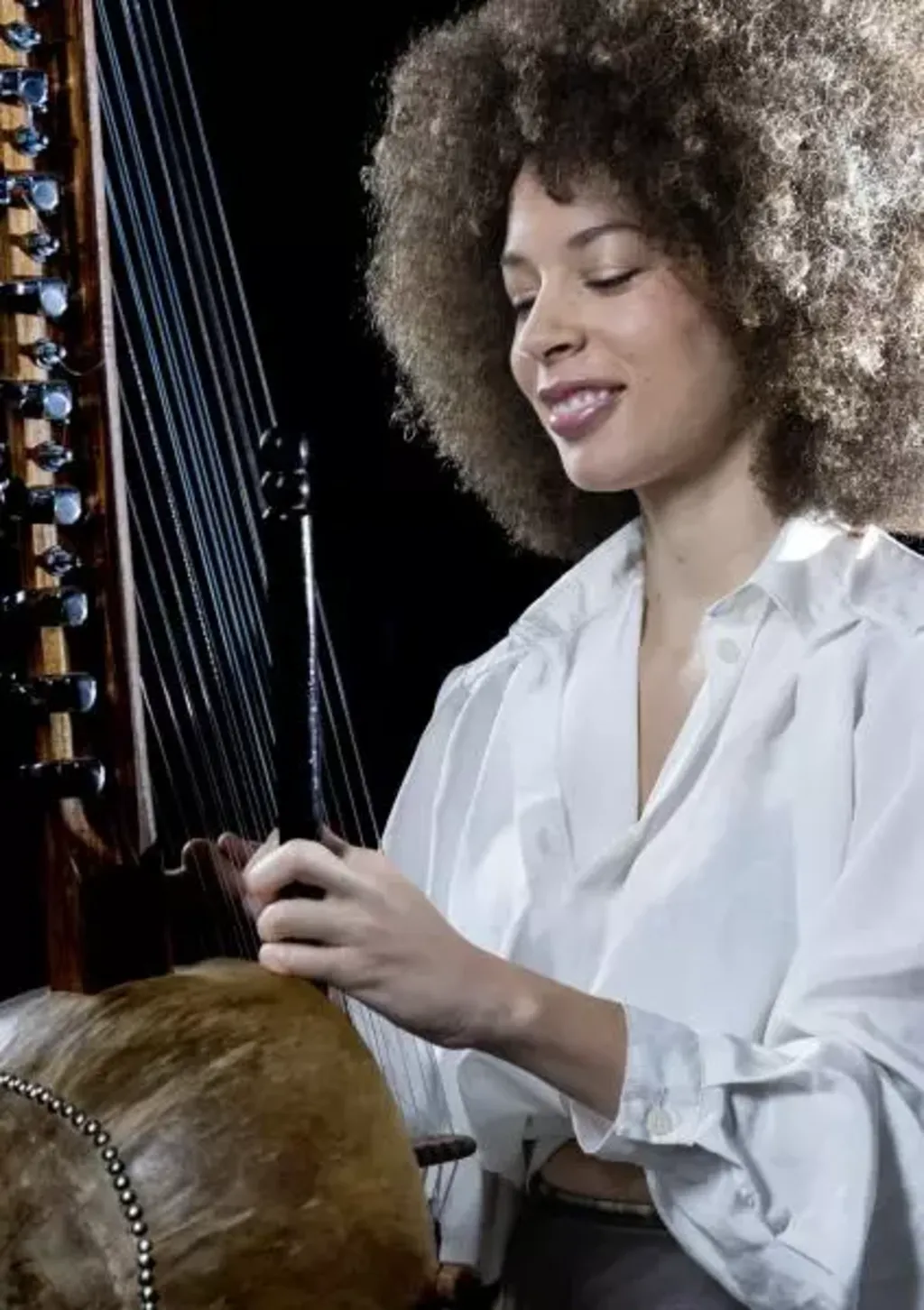 Cet instrument à cordes, sorte de harpe emblématique de l'Afrique de l'Ouest et traditionnellement réservé aux hommes, lui est apparu en rêve et l'a choisie, résume-t-elle. Et les joueurs, appelés griot ou djeli, lui ont fait une place.