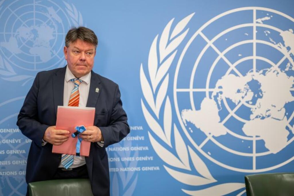 | Petteri Taalas, le secrétaire général de l'Organisation météorologique mondiale (OMM), à Genève, le 21 avril. |
