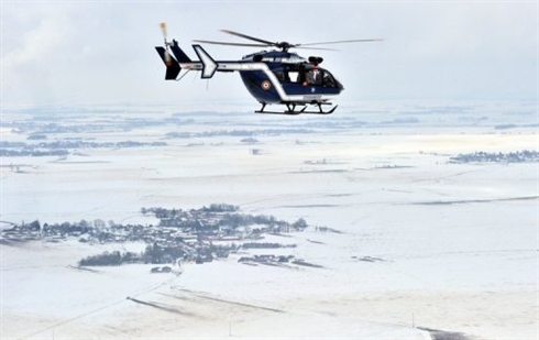 | Un hélicoptère de gendarmerie survole l'A1 près de Roye. Photo : AFP/VNA/CVN |