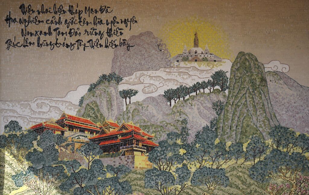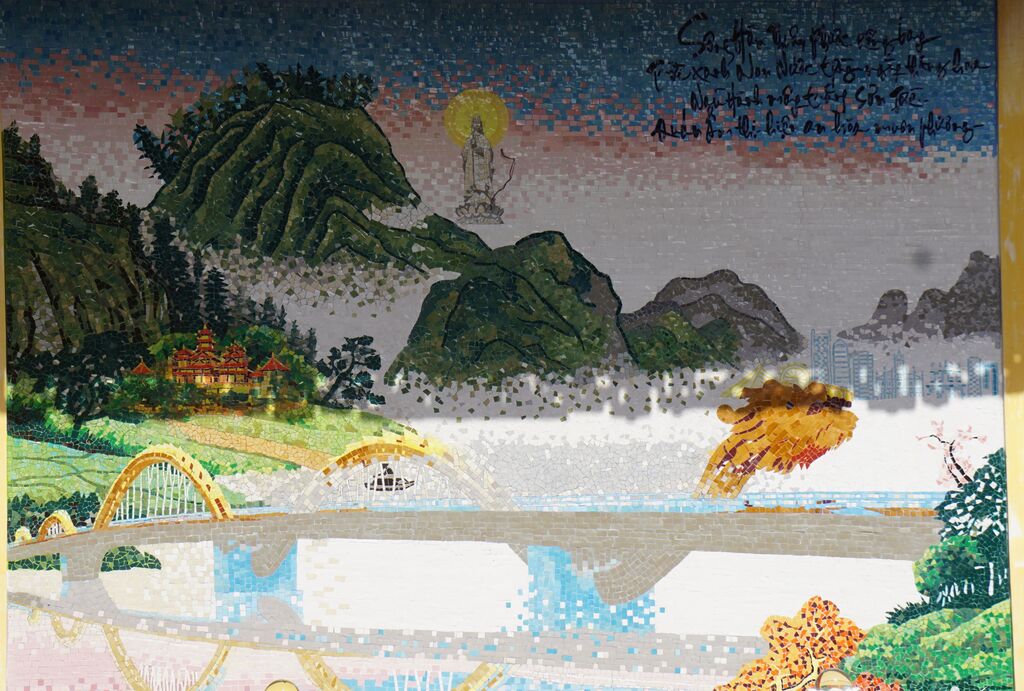 Selon le vénérable Thich Huê Vinh, abbé de la pagode, les artisans de Bat Tràng ont travaillé pendant deux ans pour terminer ces peintures qui couvrent une superficie totale de 192 m2. Elles sont méticuleusement assemblées à partir de petits morceaux de porcelaine colorés et fixés aux murs de quatre tours que sont Phuoc Huê, Thai Hoà, Thanh Tuu et Viên Man.