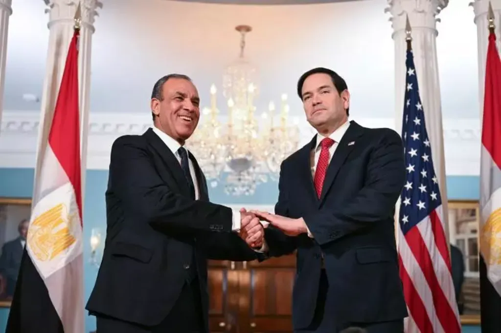 | Le secrétaire d'État américain Marco Rubio (droite) reçoit son homologue égyptien, Badr Abdelatty, le 10 février à Washington. |