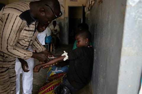Une petite fille reçoit une injection pour soigner son paludisme dans un dispensaire de Ziniare, au Burkina Faso, le 20 août 2019. Photo : AFP/VNA/CVN |