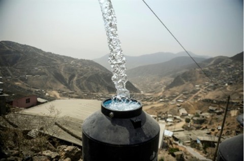 | De l'eau potable destinée aux habitants d'un quartier de Lima touché par la pollution de la rivère Limac, le 3 mars 2016 au Pérou. |