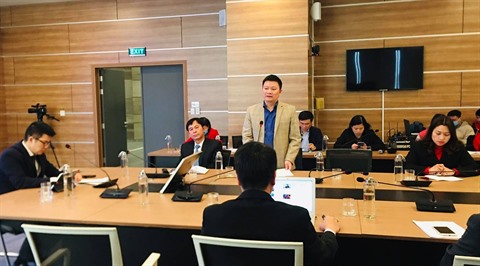| Tô Duc (debout), chef du Bureau national de la lutte contre la pauvreté, lors d’une conférence de presse le 24 décembre à Hanoï. |