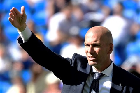| L'entraîneur français du Real Madrid, Zinédine Zidane, lors du match de Liga face à Villarreal, à Santiago Bernabeu, le 5 mai. |
