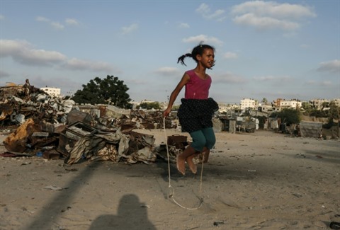 | Une fillette palestinienne joue dans le camp de réfugiés palestiniens de Khan Younès à Gaza, le 25 août. |