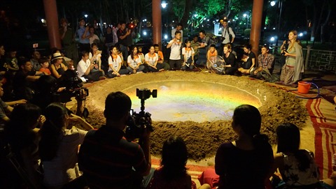 | La performance "Cratère N°6899" de l’artiste Gwendoline Robin de Wallonie-Bruxelles (Belgique) présentée lors du Festival de Huê 2018. |