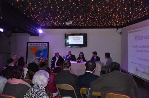 Lors du débat, David Camroux, chercheur du Centre des recherches internationales (CERI) et enseignant à Sciences Po Paris, a présenté un exposé sur le thème "Équilibre ou acrobatie ; unité ou division ? Les pays de l'ASEAN face à la montée de la puissance chinoise". Pierre Journoud, chercheur à l'Institut de recherche stratégique de l'École militaire (IRSEM) et professeur à l'Université Paul Valéry Montpellier III, s'est exprimé sur le thème "Le jeu des grandes puissances et des puissances régionales", alors que Nguyên Thanh Huong, enseignante à Sciences Po Paris, a présenté l'exposé intitulé "Opinion publique et les politiques intérieures de la Chine, des Philippines et du Vietnam".