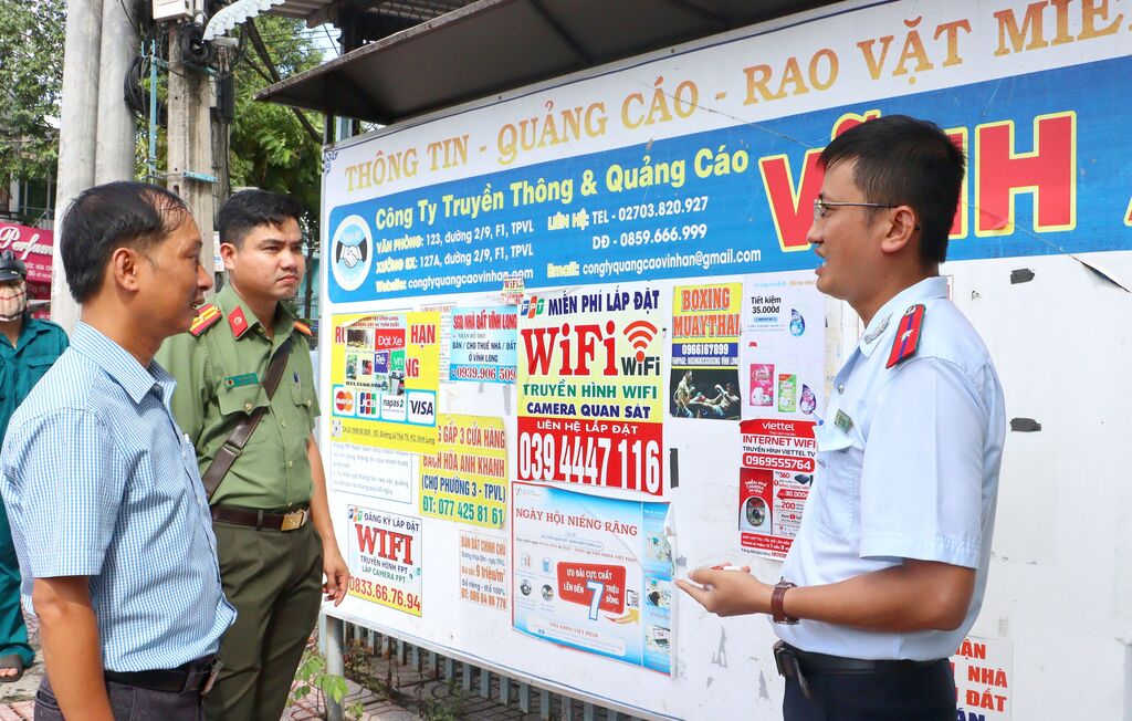 | Vérification du contenu sur les panneaux publicitaires et les petites annonces gratuites dans la province de Vinh Long (Sud). |