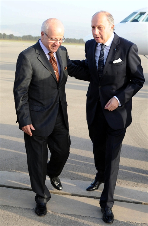 | Le ministre français des Affaires étrangères, Laurent Fabius (droite), son homologue algérien Mourad Medelci,le 15 juillet à Alger. |