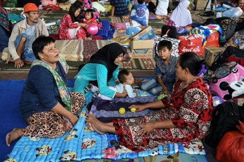 | Des réfugiés évacués de l'île de Sebesi sont regroupés dans un centre d'hébergement à Kalianda, le 27 décembre |