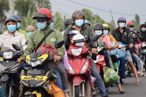 | Des ouvriers quittent la ville pour retourner dans leur localité d’origine lors de la 4e vague épidémique. |