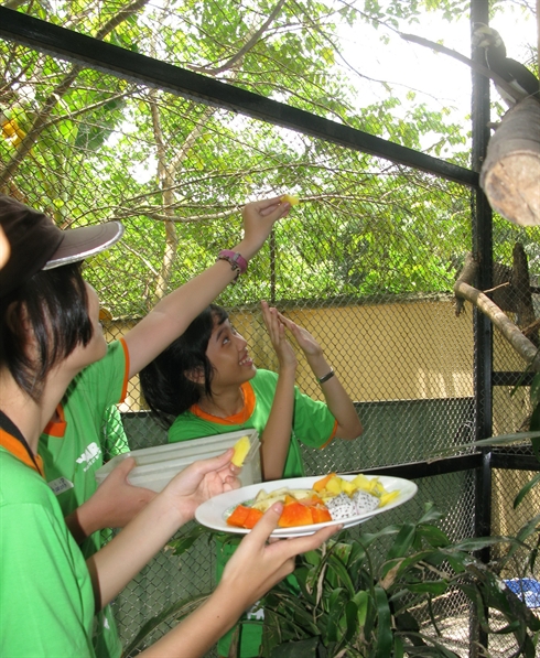 | Les élèves ont rendu visite au Centre de secours aux fauves à Hô Chi Minh-Ville. |