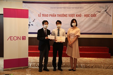 | Lors de la remise de cadeaux à des stagiaires vietnamiens au Japon, le 5 septembre. |