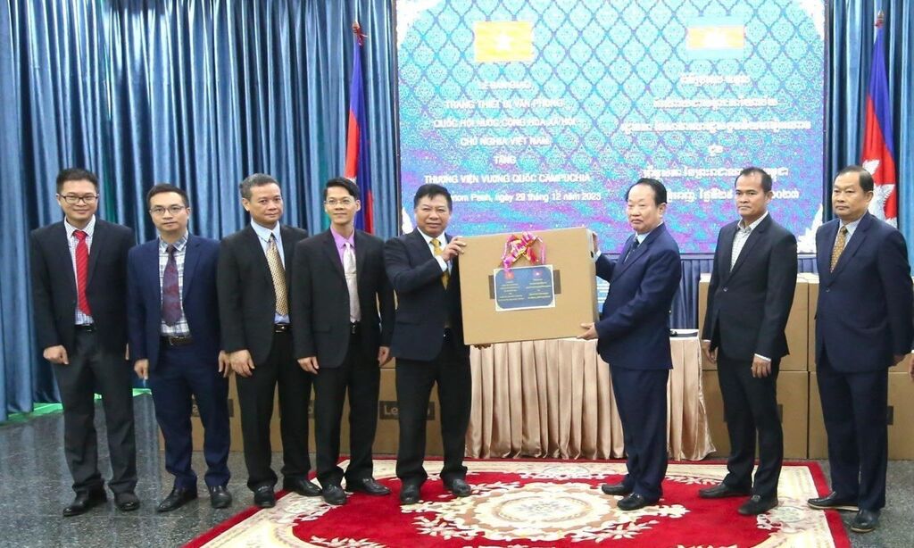 Au nom de l'Assemblée nationale vietnamienne, l'ambassadeur du Vietnam au Cambodge, Nguyên Huy Tang, a remis du matériel de bureau d'une valeur totale de 100.000 USD au secrétaire général du Sénat cambodgien, Oum Sarith.
