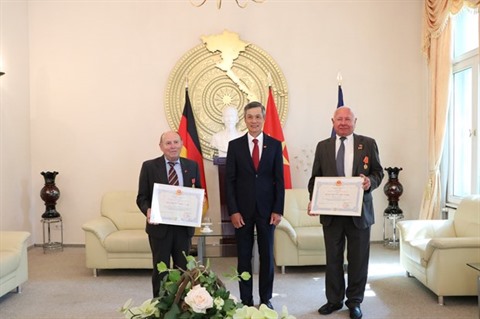 Ces distinctions honorifiques reconnaissent les contributions actives de Siegfried Sommer, président de l'Association Allemagne - Vietnam, et Paul Hoffmann, ancien vice-président de l'Association Allemagne - Vietnam, rédacteur en chef de la revue électronique "Vietnam Info", au renforcement de la solidarité, de l'amitié et de la coopération entre les peuples des deux pays.