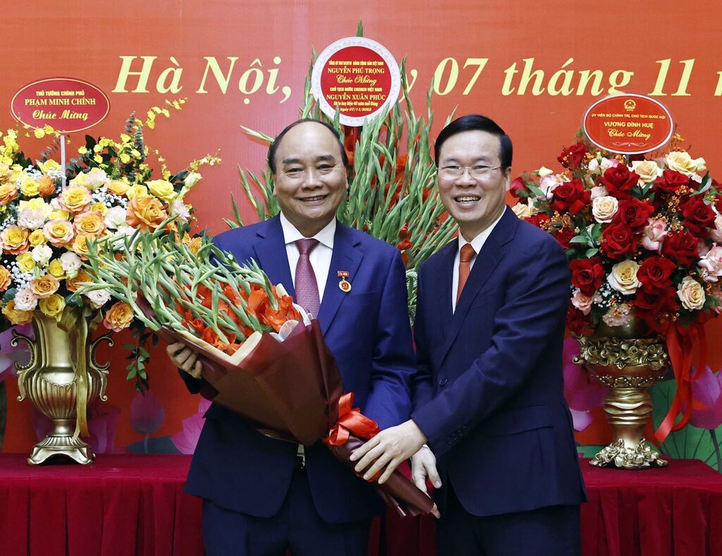 Dans son discours, Vo Van Thuong a souligné le sens de responsabilité, le dévouement, l’enthousiasme et les efforts de Nguyên Xuân Phuc pour le Parti, la Patrie et le Peuple. Il a exprimé son souhait que le président Nguyên Xuân Phuc continue de contribuer davantage à la cause révolutionnaire du Parti, de l'État et du Peuple.