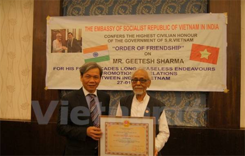 Ces 40 dernières années, Geetesh Sharma a organisé de nombreuses activités de soutien de la lutte d'hier pour l'indépendance nationale puis du processus de développement d'aujourd'hui du Vietnam. Il a écrit plusieurs livres sur le pays ainsi que les relations vietnamo-indiennes, et participé à diverses éditions du Salon du livre de Calcutta pour présenter aux amis étrangers des publications sur le Vietnam.