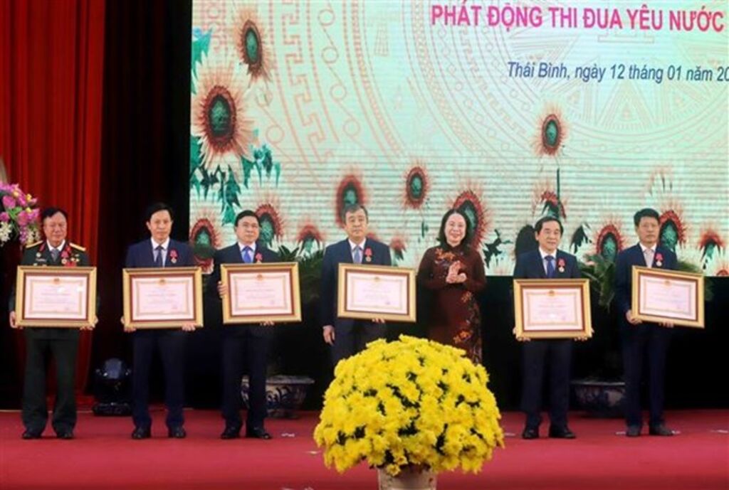 À cette occasion, la vice-présidente de la République, Vo Thi Anh Xuân, a décerné l’Ordre du Travail de première, deuxième et troisième classes à six personnes de la province de Thai Binh ayant eu des réalisations exceptionnelles dans leur travail de 2018 à 2022, contribuant ainsi à l'édification du socialisme et à la défense de la Patrie.