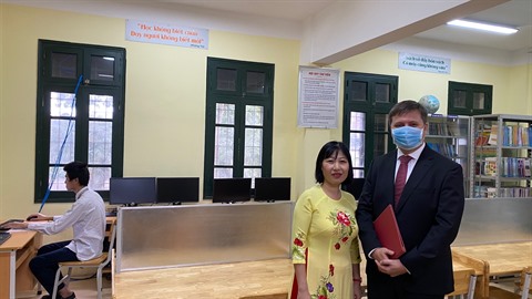 | La proviseure du lycée Vietnam-Pologne, Ngô Thi Mai Huong, et l’ambassadeur de Pologne au Vietnam, Wojciech Gerwel, le 28 octobre à Hanoï. |