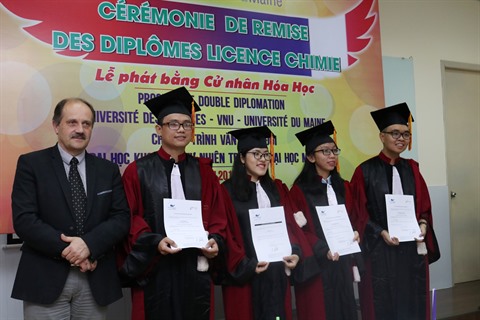 | Cérémonie de remise des doubles diplômes licence chimie aux étudiants de la promotion 2013-2017, le 30 juin à Hô Chi Minh-Ville. |