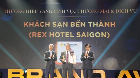 | Le représentant de l'hôtel Bên Thành reçoit le prix de la Marque d'or de Hô Chi Minh-Ville dans le domaine du commerce et des services. |