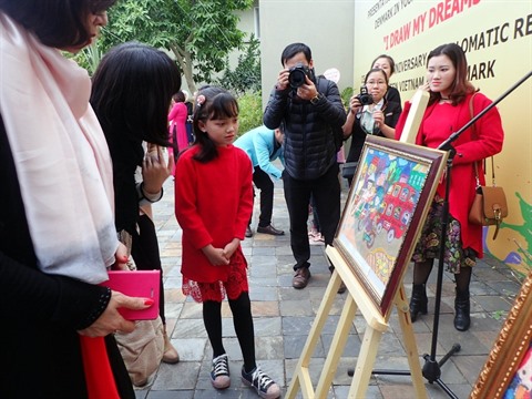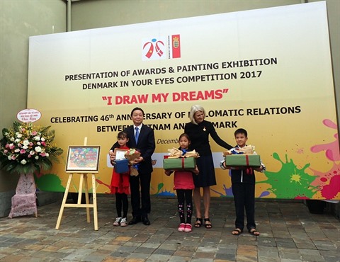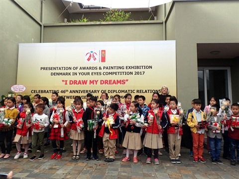 La cérémonie de remise des prix du concours de peinture “Le Danemark dans mes yeux 2017 - Je dessine mes rêves” a été organisée vendredi 1er décembre dans la résidence de l’ambassadrice du Danemark, Charlote Laursen, à Hanoï.