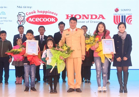 Le slogan "Porter un casque, sécurité pour vous, éviter les accidents, bonheur pour toute la famille" de Doàn Nguyên Thuy Chi, élève du cours élémentaire 1re année de l’école primaire Ngô Thi Nhâm, à Hanoï est le lauréat du concours. Il a été choisie pour apparaître sur des affiches et des carnets de sensibilisation sur la sécurité routière.