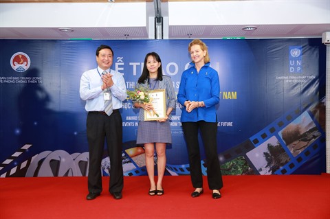 | La représentante de la Radio-télévision de la province de Khanh Hoà reçoit le premier prix du concours. |