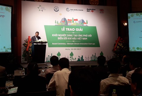 | Cérémonie de remise des prix «Start-up - Innovation adaptée aux changements climatiques», le 20 septembre à Hanoï. |