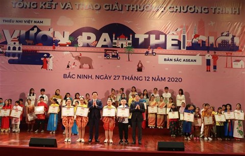 | Le Conseil central de l’Union des enfants pionniers Hô Chi Minh remet des récompenses du 1er programme "Les enfants vietnamiens au monde", le 27 décembre à Bac Ninh. |