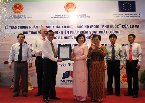Il s’agit du fruit de la coopération entre le ministère de l’Industrie et du Commerce, le Département de la propriété intellectuelle du ministère des Sciences et des Technologies, l’ambassade du Vietnam en Belgique et le Comité populaire de Kiên Giang afin de protéger les produits vietnamiens dans l’UE.