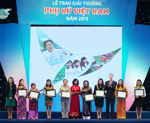 | Le prix Femme vietnamienne 2013 a été décerné à 5 collectifs et 10 individus pour leurs succès brillants dans les activités sociales. Photo : VNA/CVN |