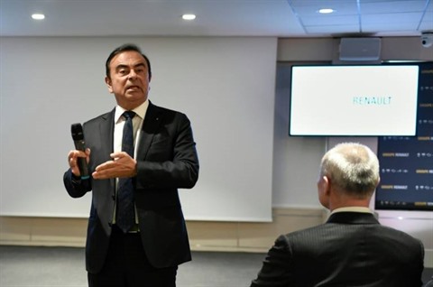 | Carlos Ghosn, PDG de Renault Nissan, lors d'une conférence de presse au siège du groupe, à Boulogne-Billancourt, près de Paris, le 16 février. |
