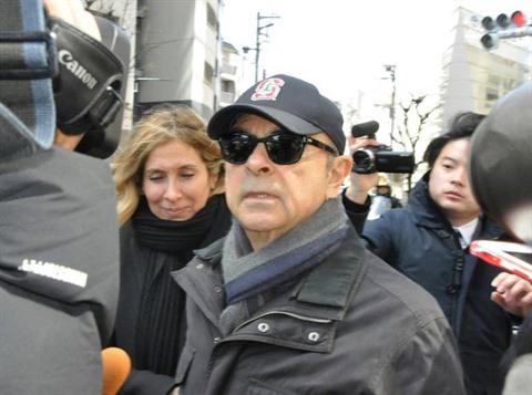 | Carlos Ghosn et son épouse Carole, à Tokyo le 9 mars. |