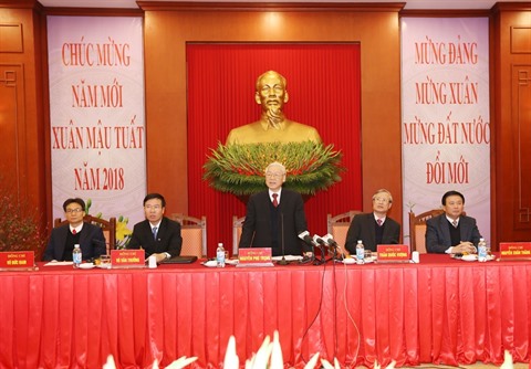 Nguyên Phu Trong s’est déclaré convaincu que ces derniers continueront d’accompagner le Parti, l’État et le peuple dans la réalisation des objectifs et missions fixés pour 2018, ainsi que dans l'application de la Résolution du XIIe Congrès national du Parti.