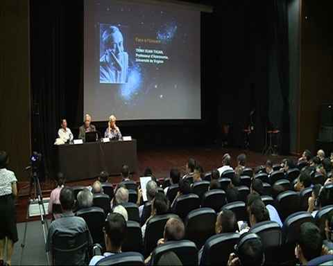 | La conférence donnée par l’astrophysicien Trinh Xuân Thuân le 5 juillet à l’Institut français de Hanoi (L’Espace) attire un grand public. |