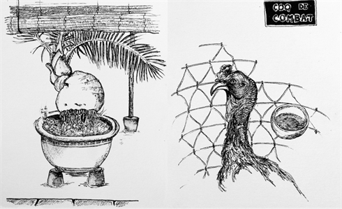 Flora Kam, diplômée des beaux-arts d’Épinal (France) est la plus jeune. Son travail au Vietnam est basé sur l’illustration, tranches de vie dessinées, débordant d’énergie et de folie douce. Ivan Izquierdo, également sorti des beaux-arts de Grenade (Espagne), travaille vidéos (animations), dessins et installations. Eric Gossec, (beaux-arts d’Orléans, France), s’occupe du son, de la vidéo (à ce jour). Travail basé sur l’archivage des différentes inspirations du quotidien. Caroline Cranskens, écrivaine (France) réalise une quête à travers le pays. À ce jour, périple entre Saigon et Hanoi. Gaëlle Vaillant (vidéo, documentaire) et Catherine Burki (plasticienne). Sophie Bacquié (plasticienne) et Itzio Barberena, architecte mexicain. Et moi, Xavier de Kepper, plasticien et observateur (autodidacte). Organisateur du workshop Vietnam avec La Quy Tùng. Je travaille sur un projet de création d’une ville imaginaire (maquette).