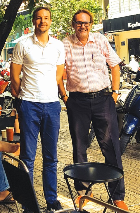 | Guillaume Rondan (gauche) et l'auteur à Hô Chi Minh-Ville. |