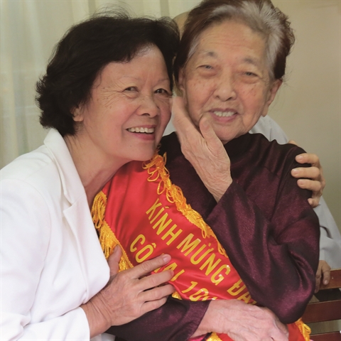 | Ngô Thi Hai (droite), une centenaire qui a consacré sa vie à la médecine. |