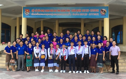 | Les jeunes vietnamiens et laotiens participant à la rencontre d’amitié, tenue du 25 au 27 juillet à Quang Binh (Centre). |