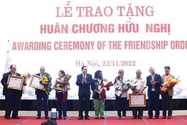 | Le vice-président du Comité populaire de Hanoï, Hà Minh Hai, et la présidente du Conseil mondial de la paix, Socorro Gomes Coelho, le 23 novembre. |